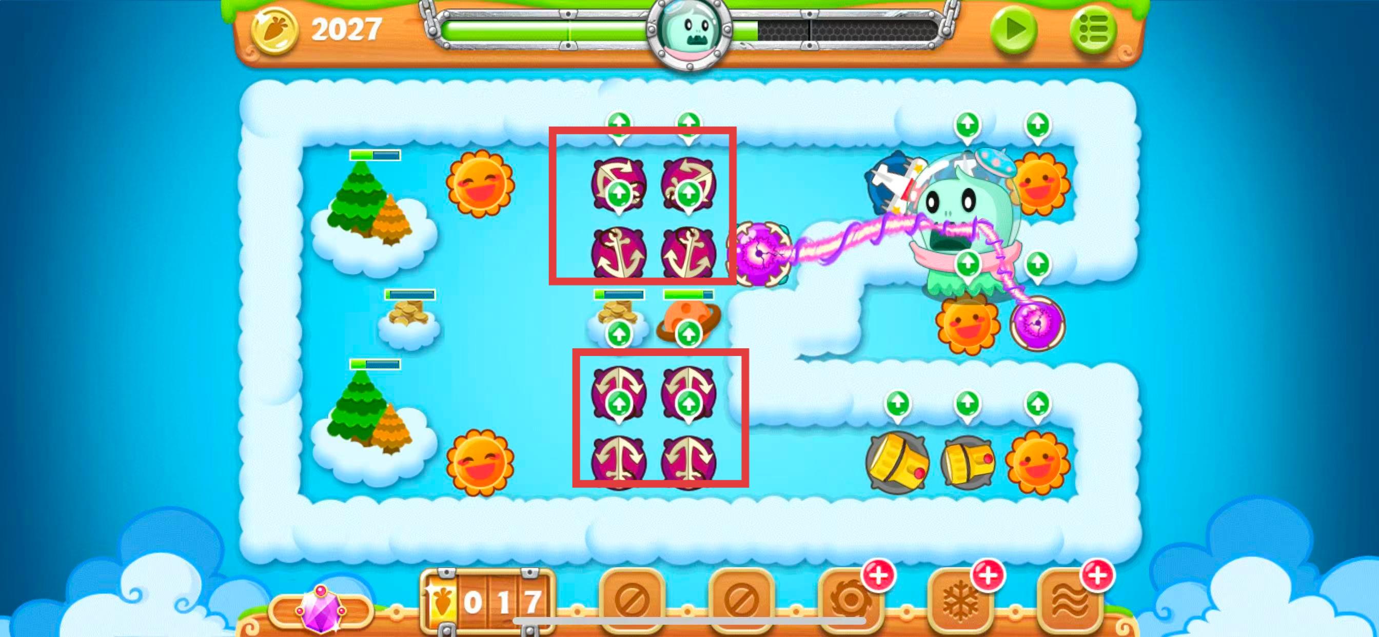 (在怪物快吃掉蘿卜的時(shí)候,或者boss(鐵皮怪除外)快接近蘿卜時(shí)血還很多的時(shí)候使用(快打死別亂用)在浮冰時(shí)每關(guān)的最后一波的boss(鐵皮怪除外)特別好用)