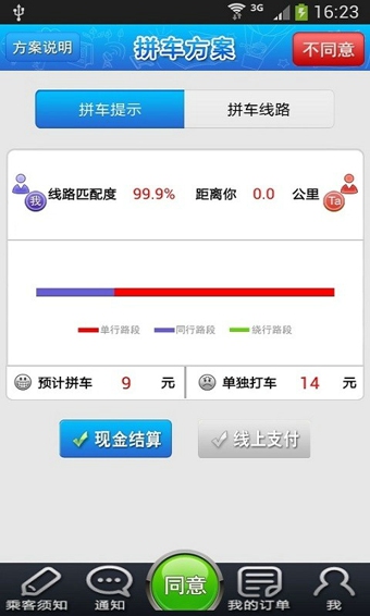 3. 提供位置接接頭、實(shí)時(shí)打表、合理分割合乘費(fèi)用的出行方案。