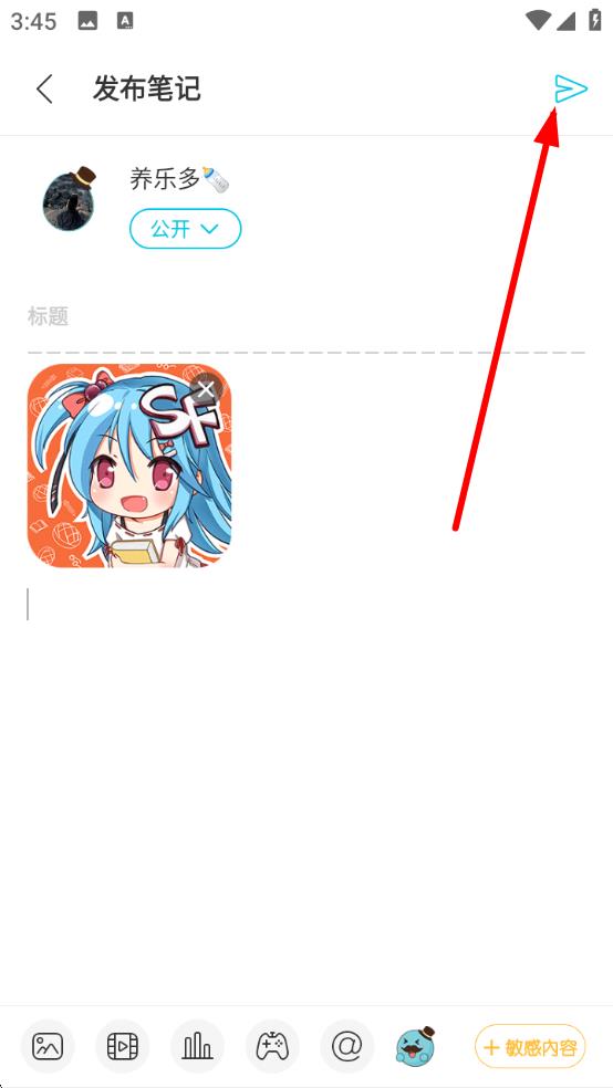 3、確認(rèn)筆記內(nèi)容無誤后,點(diǎn)擊頁面右上角的箭頭圖標(biāo),即可成功發(fā)布筆記。