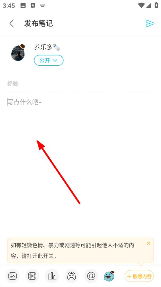 2、在發(fā)布筆記頁面,輸入想要發(fā)布的筆記標(biāo)題以及具體內(nèi)容,還能添加圖片等豐富內(nèi)容。