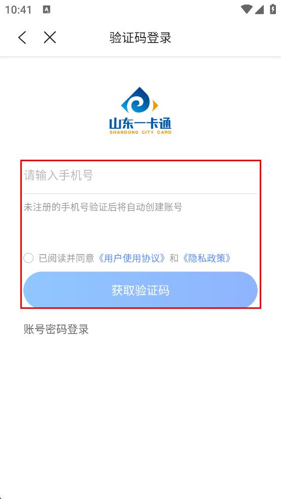 4、輸入手機號,勾選已閱讀并同意相關協(xié)議和政策后,點擊“獲取驗證碼”,輸入收到的驗證碼完成登錄。