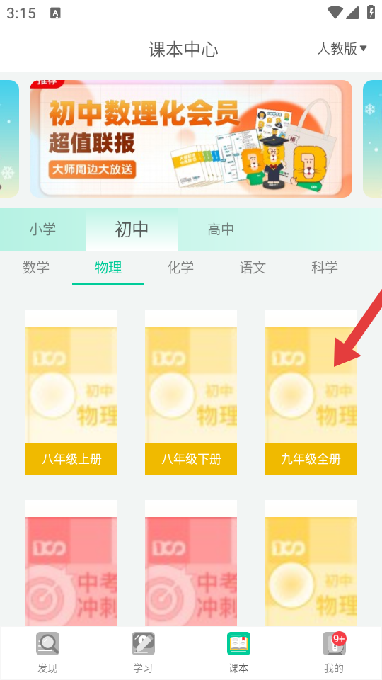 1、在課本中心選擇目標(biāo)的教材,進(jìn)入教材章節(jié)的列表頁面。