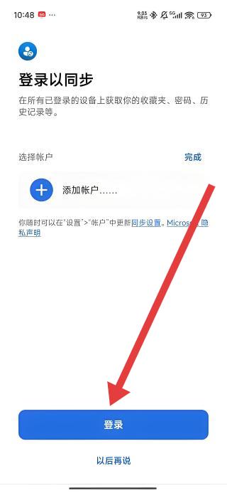3、進(jìn)入登錄同步頁面后,點(diǎn)擊底部顯眼的藍(lán)色登錄按鈕,啟動(dòng)賬戶登錄流程,實(shí)現(xiàn)跨設(shè)備同步收藏夾、密碼等信息。