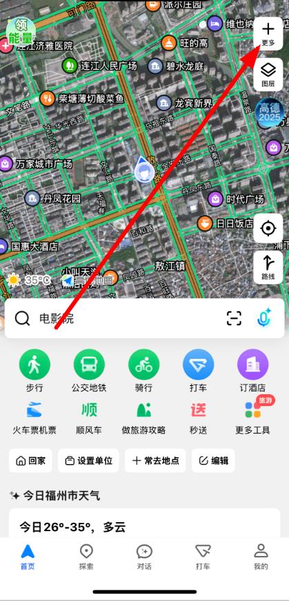2、在首頁(yè)地圖界面的右上方,點(diǎn)擊更多按鈕。