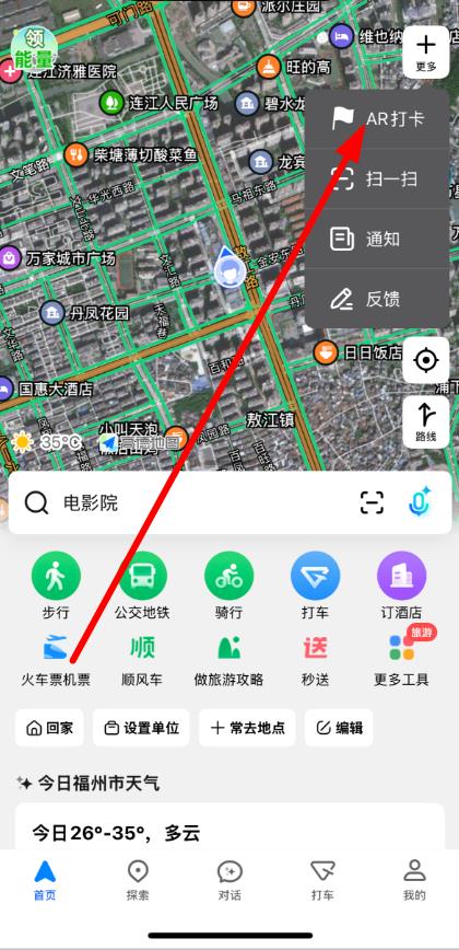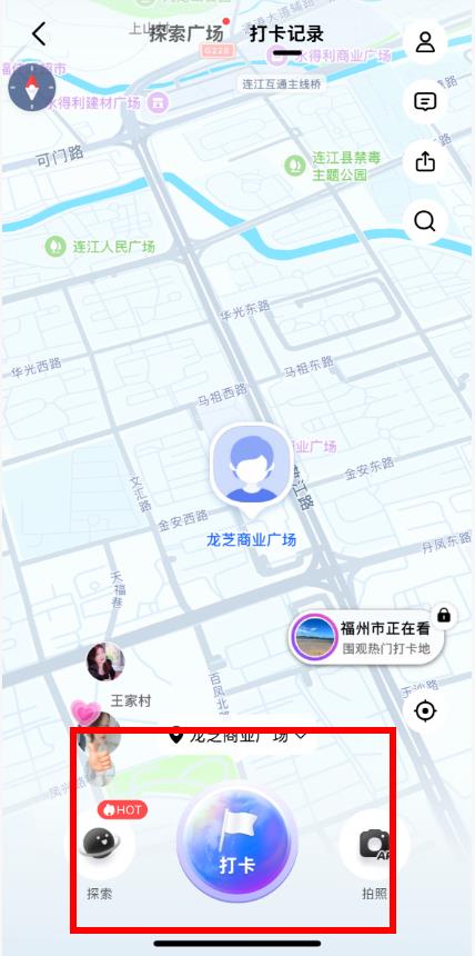 4、進(jìn)入AR打卡界面后,在地圖上找到想要打卡的地點(diǎn),點(diǎn)擊下方的打卡按鈕,根據(jù)提示完成打卡操作。