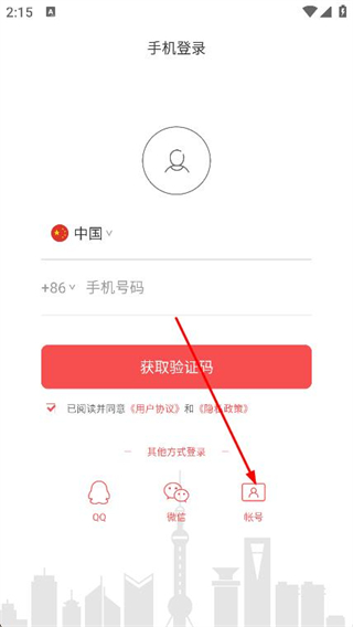 2、在手機登錄頁面,找到并點擊下方的帳號選項。