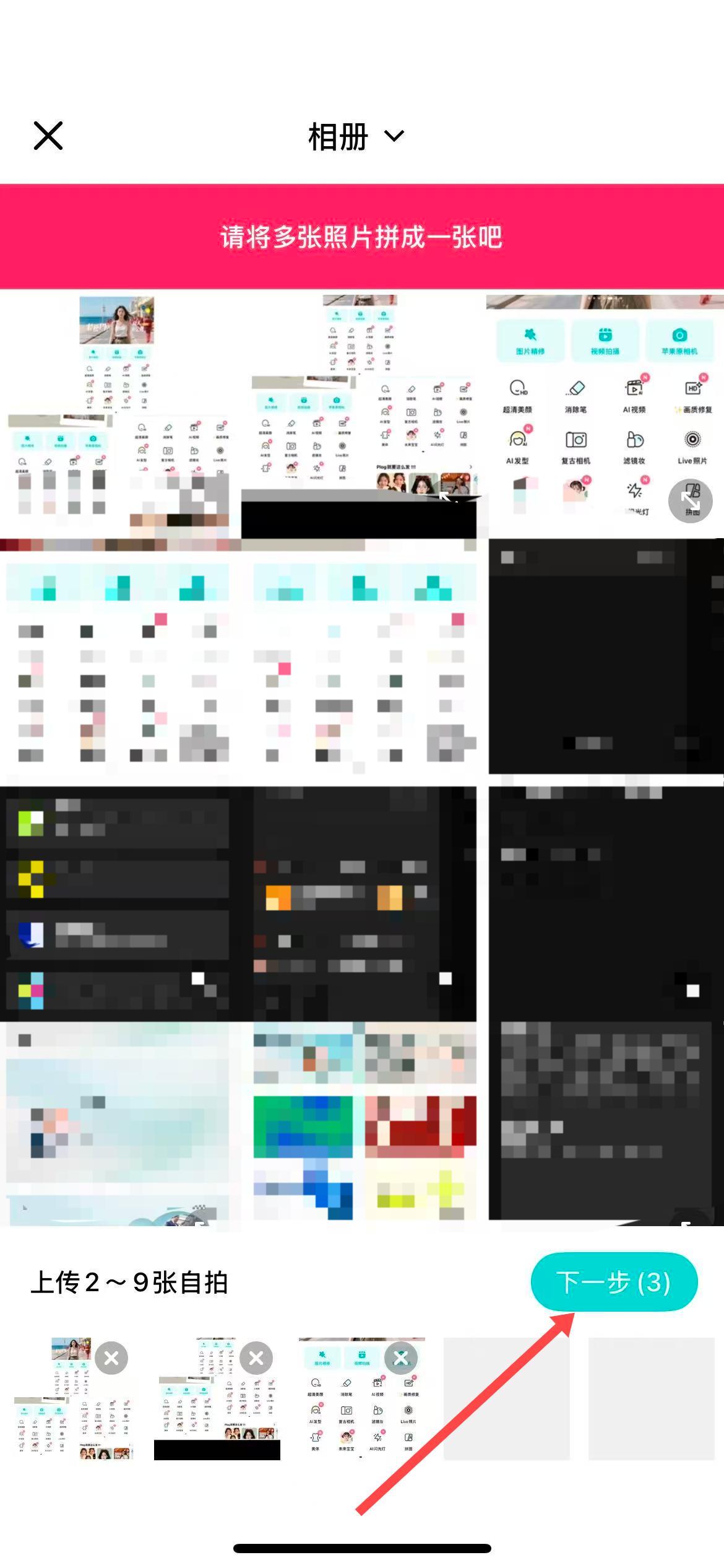 2、選擇需要拼圖的照片,選擇完點擊下一步。