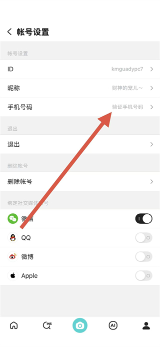 2、在個人界面賬號設(shè)置中,點擊手機號碼欄的驗證手機號碼選項。