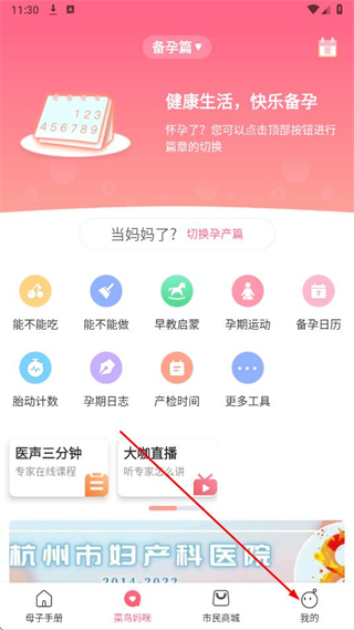 1、打開母子健康手冊(cè)APP,點(diǎn)擊導(dǎo)航欄中的我的。