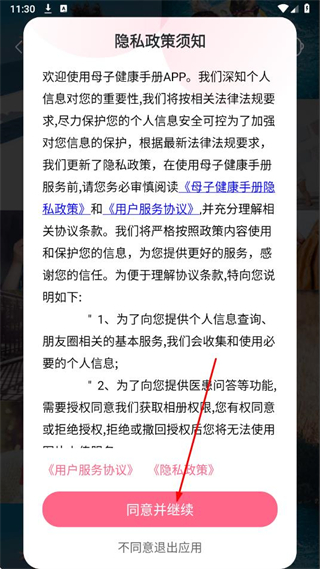 2、在彈出的隱私政策須知頁面,點(diǎn)擊同意并繼續(xù)。