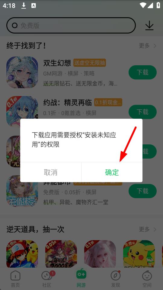 3、若彈出“下載應用需要授權‘安裝未知應用’的權限”提示,點擊確定進行授權。
