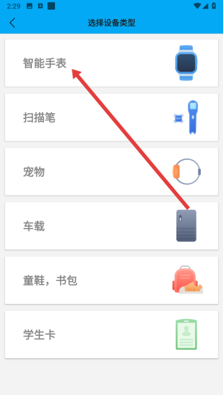 2、在選擇設備類型中,可以點擊智能手表選項進入查看。