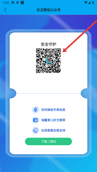 4、在跳轉到關注微信公眾號頁面后,可以通過掃描屏幕中的二維碼進行聯系客服。