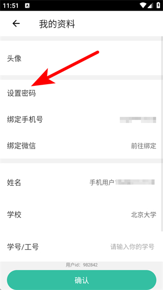 3、在我的資料頁面,點擊設置密碼按鈕,進入密碼設置的頁面。