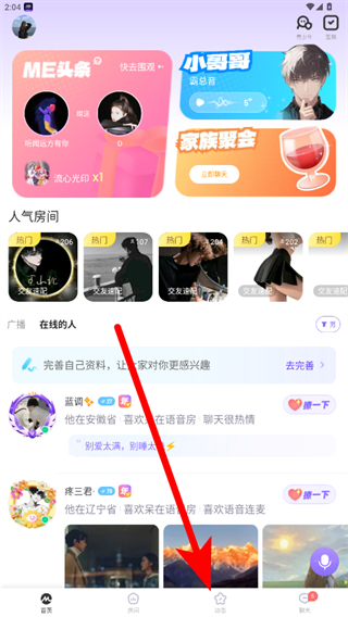 1.打開(kāi)ME應(yīng)用,點(diǎn)擊底部動(dòng)態(tài)選項(xiàng),進(jìn)入動(dòng)態(tài)界面。