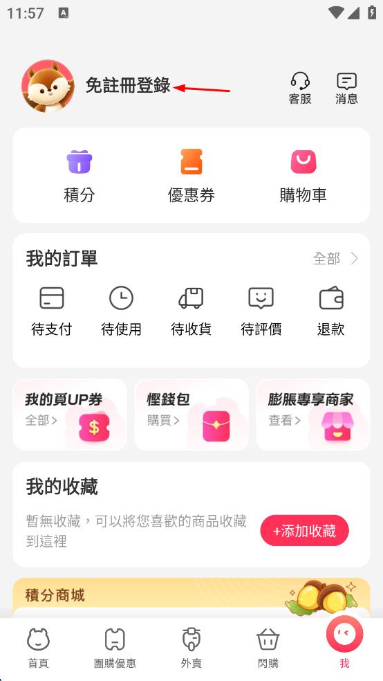 3、在“我”的頁(yè)面,點(diǎn)擊“免註冊(cè)登錄”選項(xiàng),進(jìn)入登錄界面。