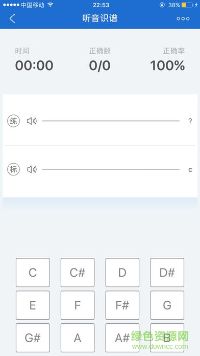 譜表支持:各個練習(xí)支持常用高音譜表,低音譜表的音名位置練習(xí)