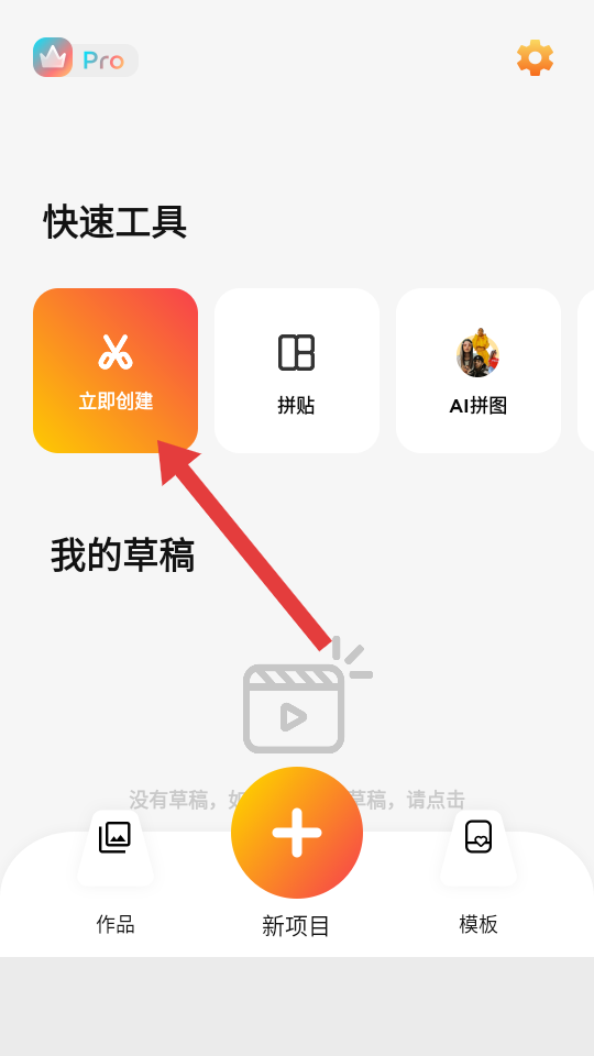 1、打開微剪輯APP,點(diǎn)擊立即創(chuàng)建,進(jìn)入視頻素材選擇界面。
