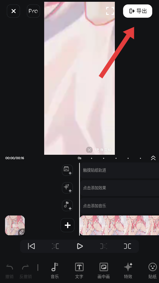 3、在視頻編輯界面,可進(jìn)行添加音樂等操作,完成后點(diǎn)擊右上角導(dǎo)出。