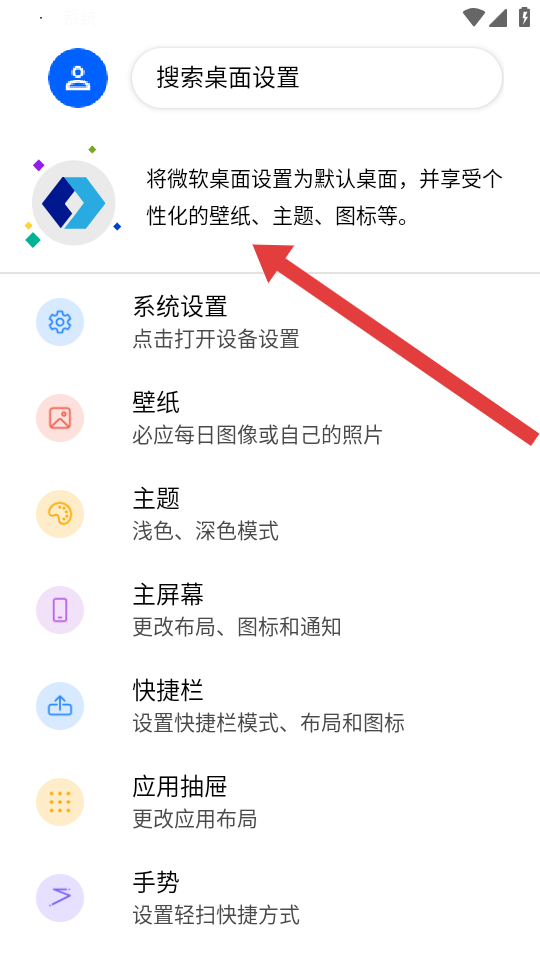 3、在桌面設置頁面,點擊將微軟桌面設置為默認桌面選項,觸發(fā)默認桌面設置流程。