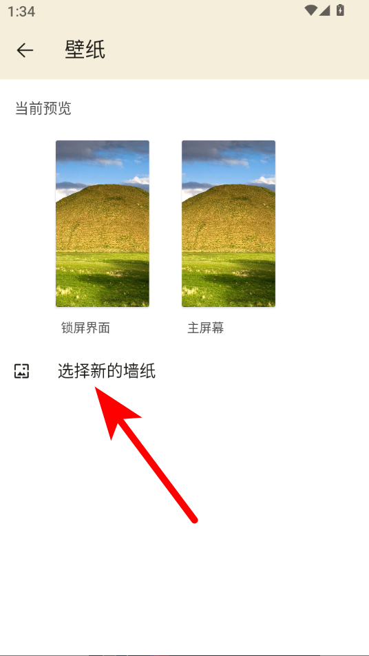 3、在壁紙界面中,點擊選擇新的墻紙。