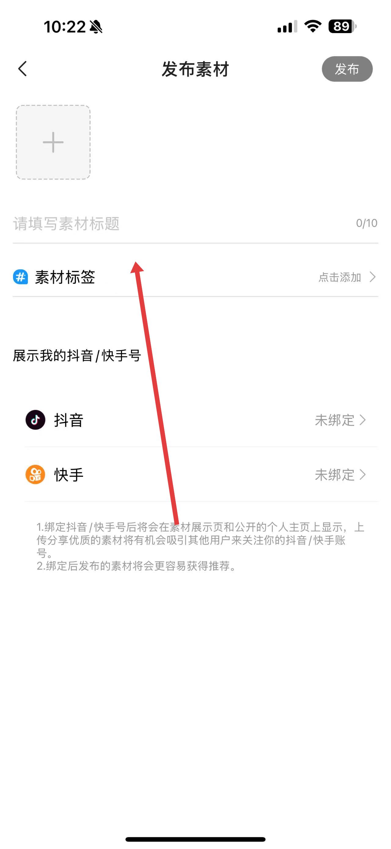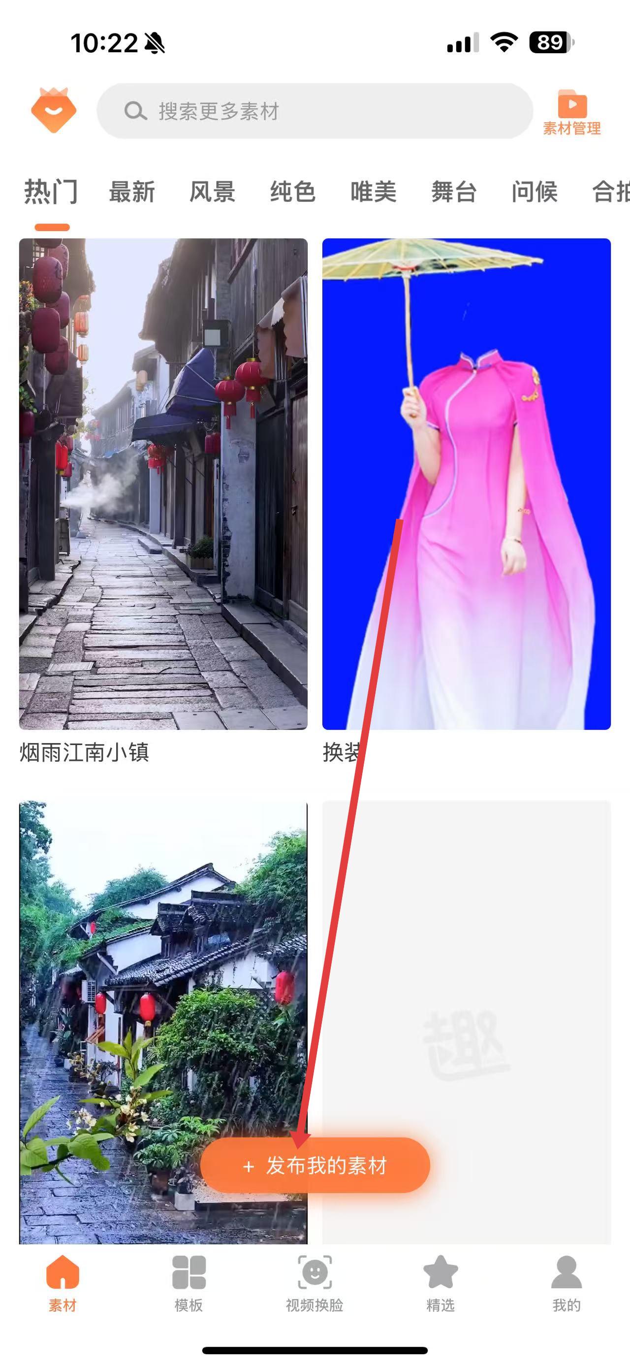 2、在素材界面里,找到并點(diǎn)擊下方的發(fā)布我的素材按鈕,進(jìn)入發(fā)布素材頁(yè)面。