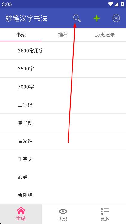 1、打開妙筆漢字書法,點擊上方的搜索圖標(biāo)。
