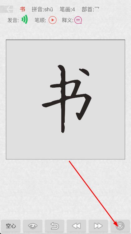 3、在漢字詳情頁面,點擊右下角設(shè)置圖標(biāo)。