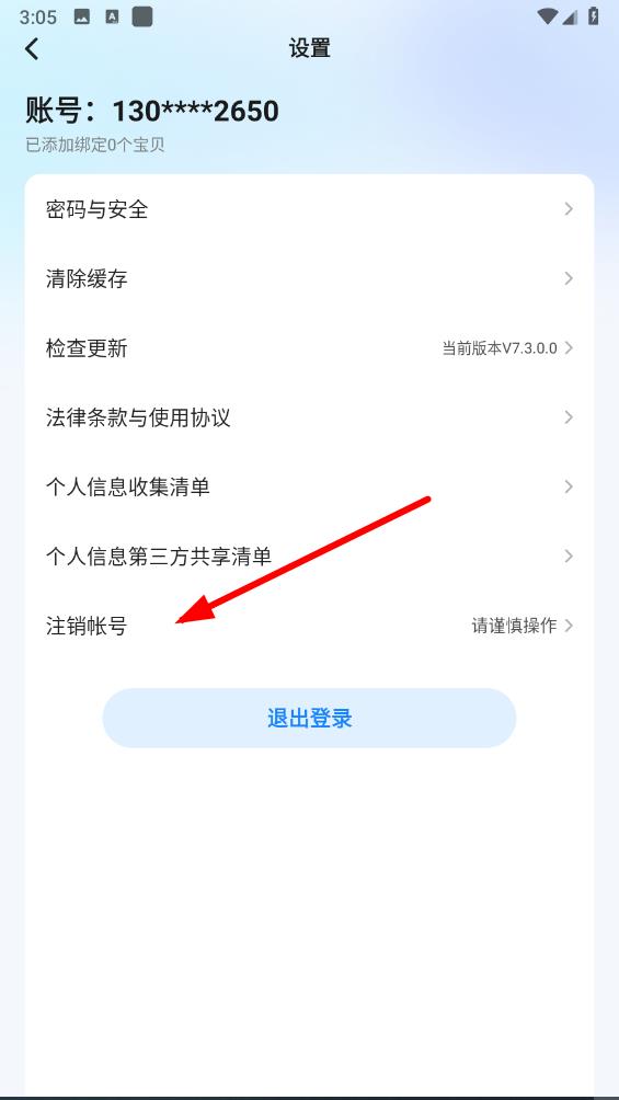 2、在設(shè)置頁面中,找到并點擊注銷帳號選項,進入注銷帳號說明頁面。