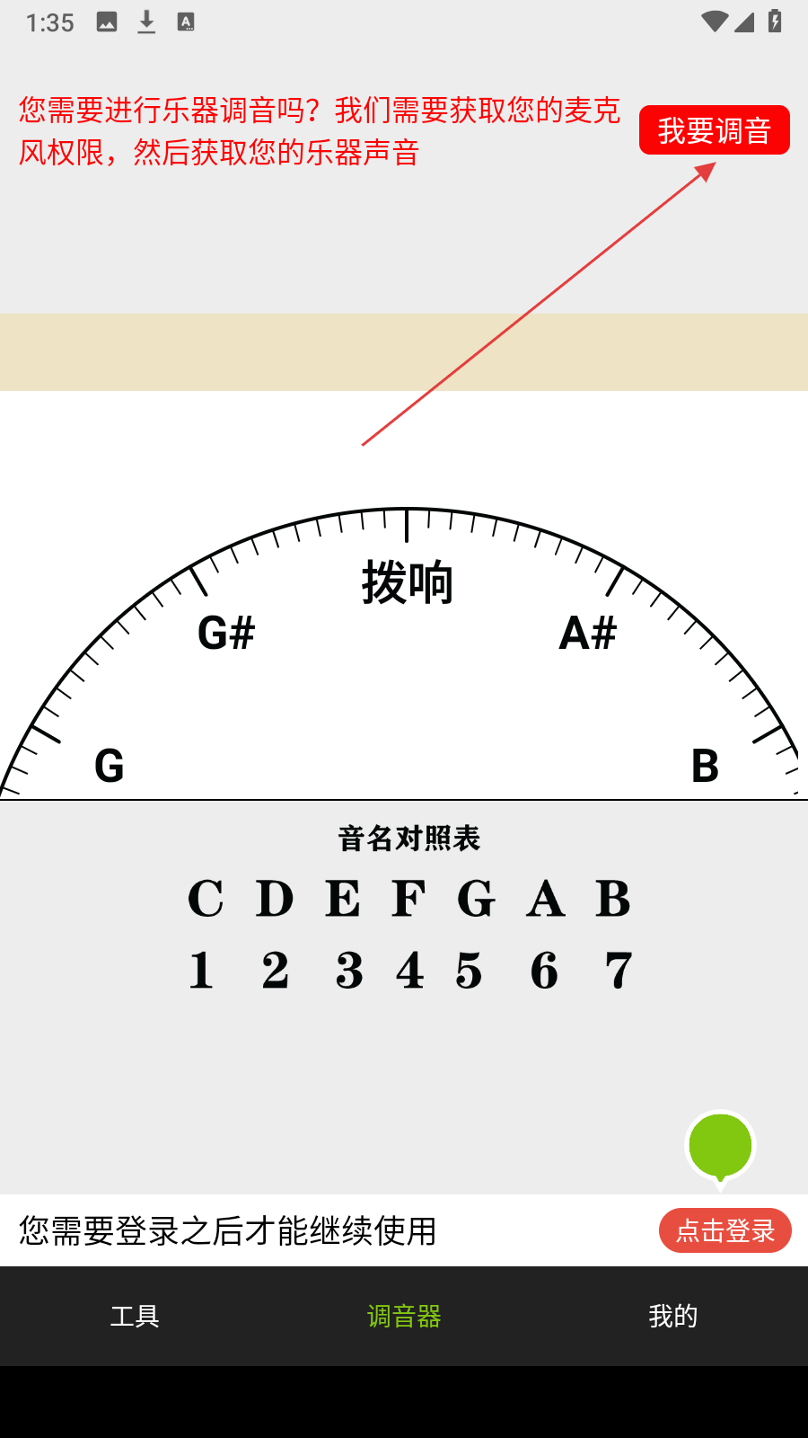 1.使用時(shí),將手機(jī)靠近吉他,依次彈撥各個(gè)弦來測(cè)各弦音。