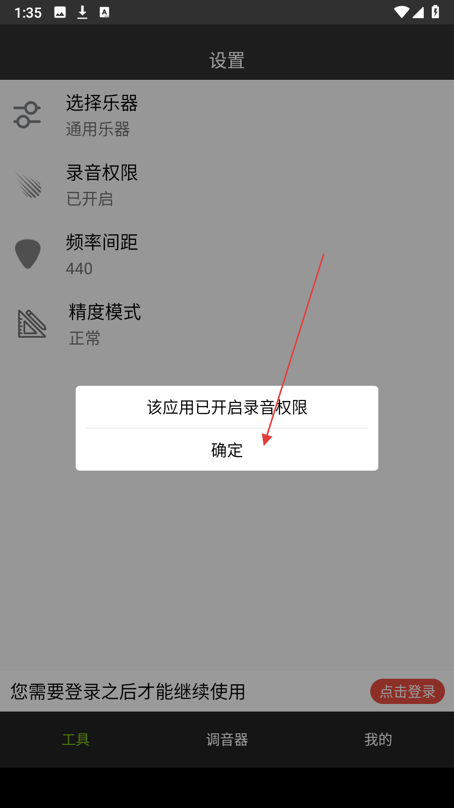 3、授權(quán)成功后,會(huì)彈出提示框顯示該應(yīng)用已開啟錄音權(quán)限,點(diǎn)擊確定。