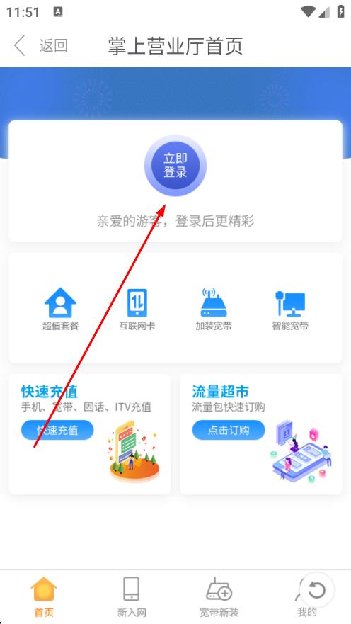 3、點(diǎn)擊移動運(yùn)營商服務(wù)后,會跳轉(zhuǎn)至對應(yīng)的掌上營業(yè)廳頁面,點(diǎn)擊立即登錄。