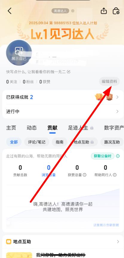 1、打開高德地圖進入個人主頁,點擊編輯資料選項進入個人資料頁面。