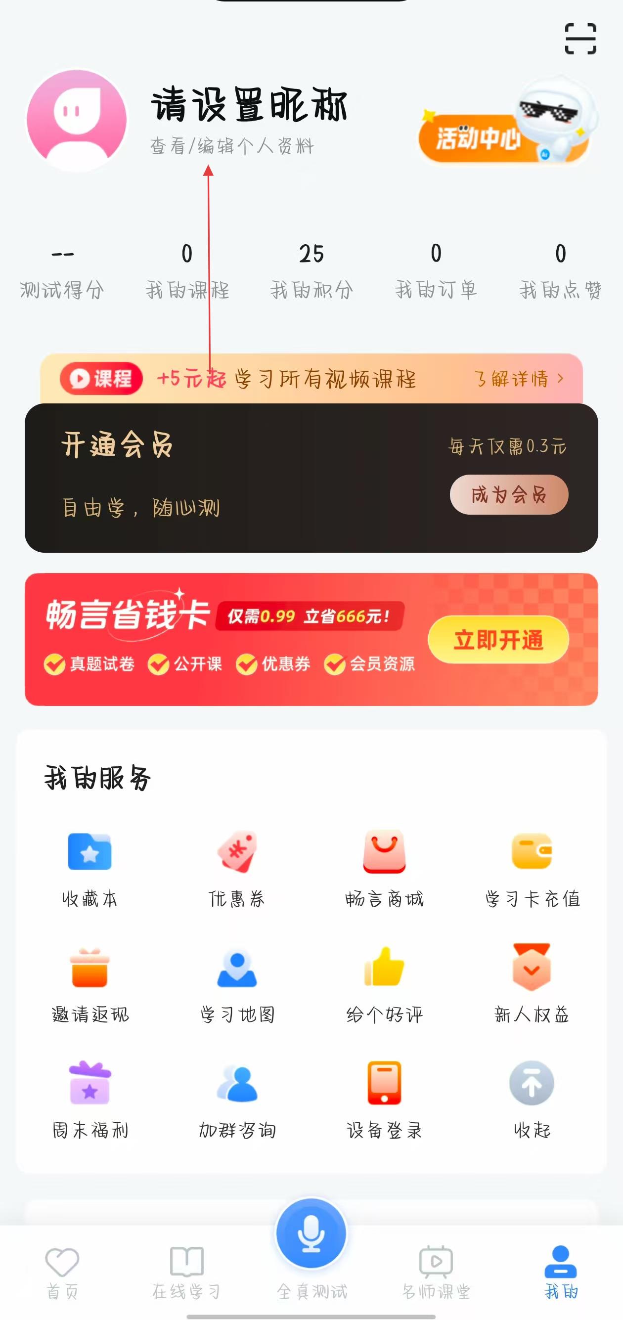 1、打開暢言普通話APP,點(diǎn)擊底部導(dǎo)航欄我的,進(jìn)入個(gè)人頁面。