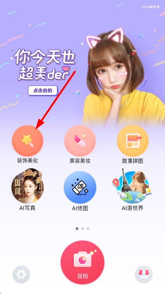 1、打開天天P圖應(yīng)用,在主界面點(diǎn)擊裝飾美化圖標(biāo),準(zhǔn)備導(dǎo)入相冊圖片。