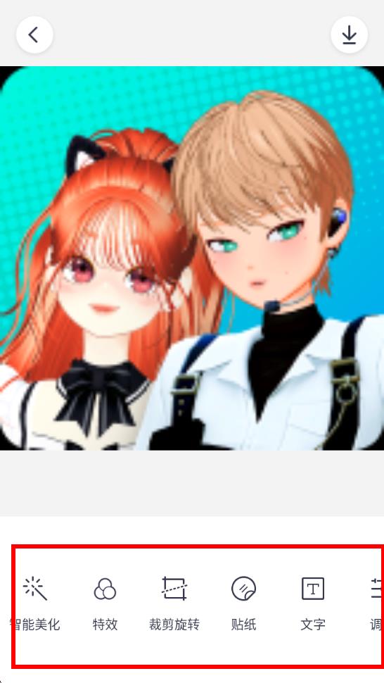 3、圖片導(dǎo)入后,利用下方功能欄中的智能美化、特效、裁剪旋轉(zhuǎn)、貼紙、文字等工具進(jìn)行編輯。