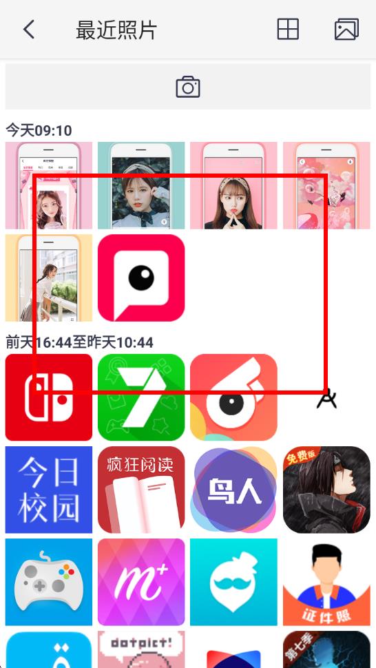 2、進(jìn)入最近照片頁面,這是相冊圖片展示頁,從中找到并點(diǎn)擊想要導(dǎo)入編輯的圖片。