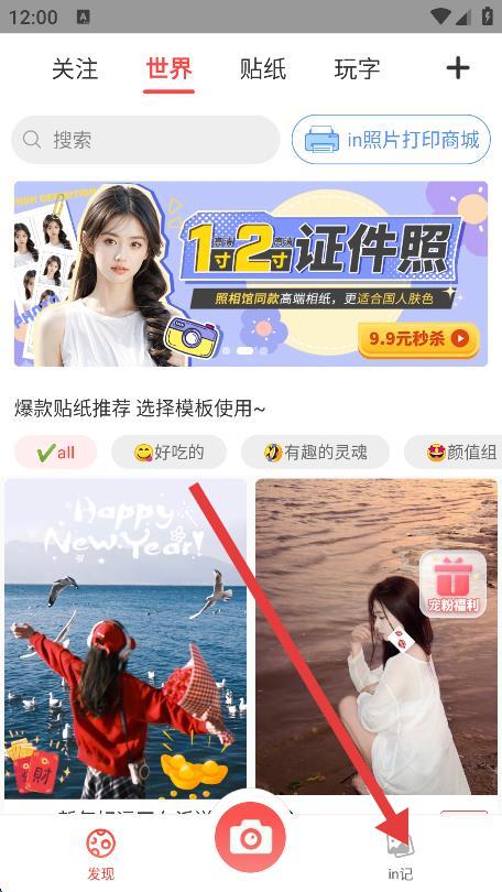 2、進(jìn)入in記頁面后,點(diǎn)擊頁面右上角的圖標(biāo)。