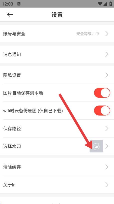 4、在設(shè)置頁面里,找到選擇水印選項(xiàng)并點(diǎn)擊。