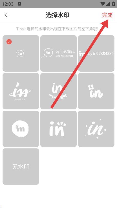 5、點(diǎn)擊需要的水印樣式,點(diǎn)擊右上角的完成即可。