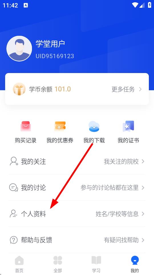 1、打開學(xué)堂在線APP,點(diǎn)擊底部導(dǎo)航欄中的我的進(jìn)入個(gè)人頁面。