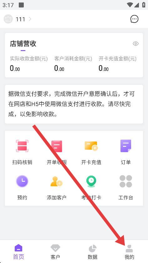 1、打開有贊美業(yè),點擊底部導航欄我的。