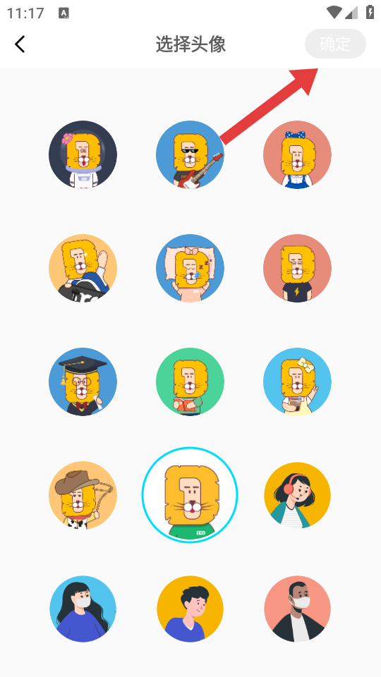 4、在選擇頭像頁(yè)面,選擇喜歡的頭像后點(diǎn)擊確定,完成頭像修改。