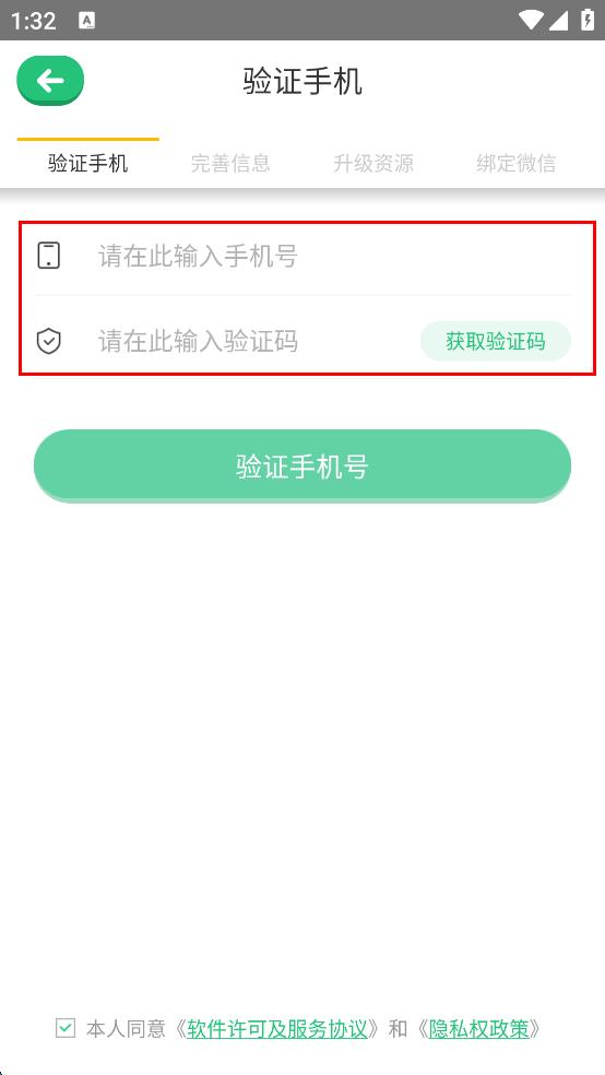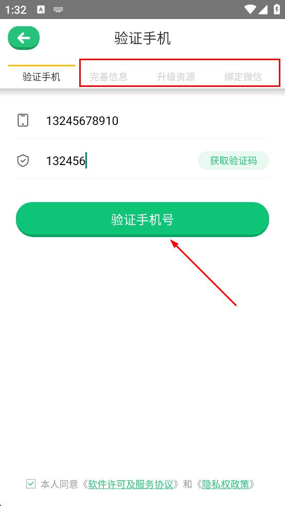 4、輸入正確的手機號和驗證碼后,點擊“驗證手機號”按鈕,之后可繼續(xù)進行完善信息、升級資源、綁定微信等操作,完成注冊流程。