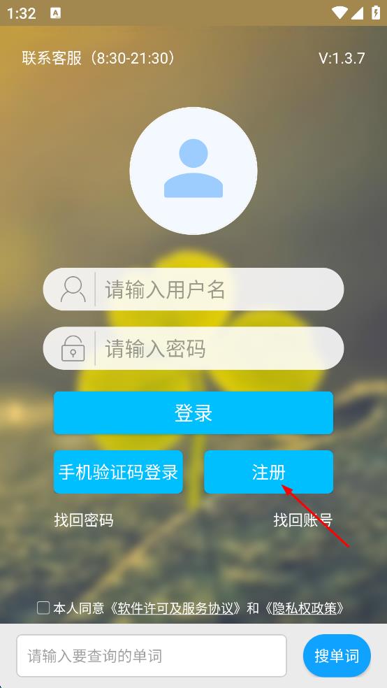 2、進入登錄注冊界面,界面有“請輸入用戶名”“請輸入密碼”輸入框,還有“登錄”“手機驗證碼登錄”“注冊”等按鈕,點擊“注冊”按鈕。
