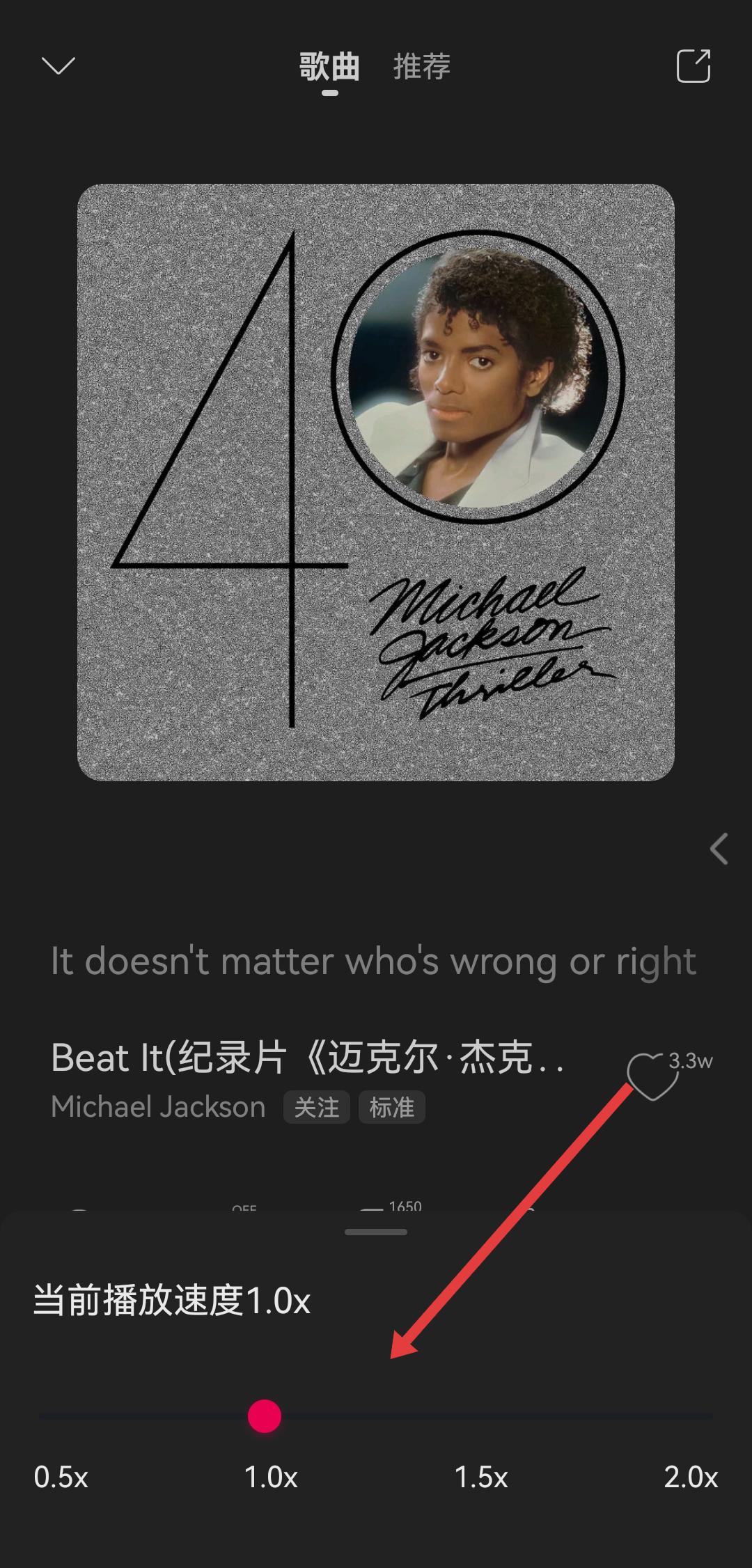 3、在播放速度調(diào)節(jié)欄中,可以根據(jù)需求選擇0.5x、1.0x等檔位,或拖動(dòng)滑塊設(shè)置想要的播放速度。