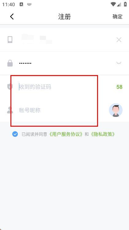 4、填入收到的驗(yàn)證碼和昵稱,點(diǎn)擊確定,即可完成賬號(hào)注冊。