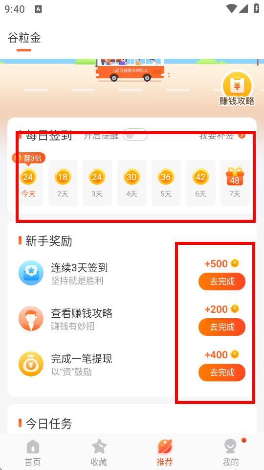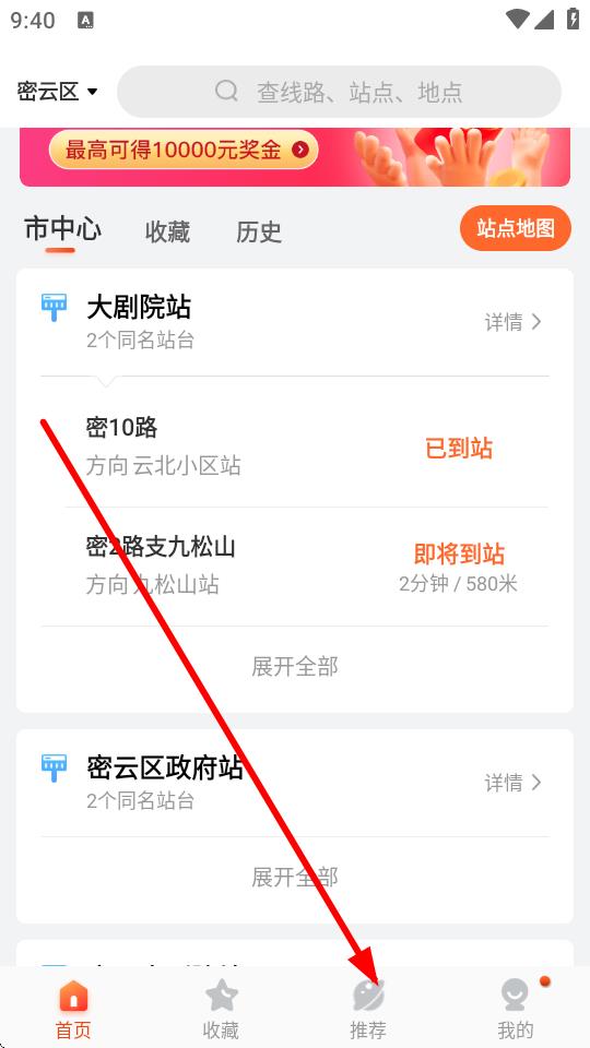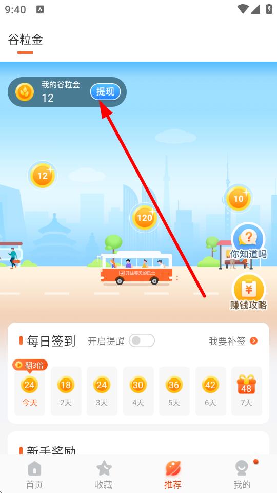 1、打開掌上公交APP,點(diǎn)擊底部導(dǎo)航欄中的推薦進(jìn)入谷粒金界面。