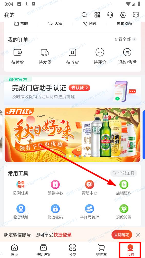 2、在個人頁面的常用工具板塊中,點擊店鋪資料選項,在店鋪資料界面,點擊上方的我的客戶經(jīng)理選項卡。