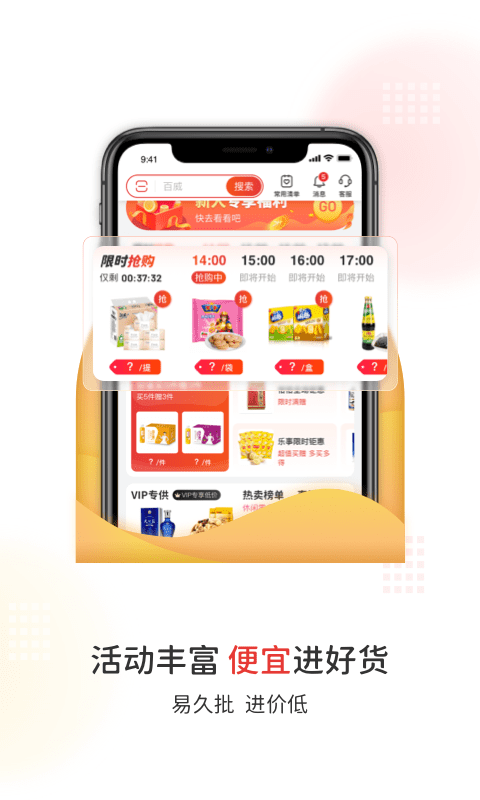 修食百貨、酒飲副食、拼團進貨,實用專區(qū)分組方便快捷.